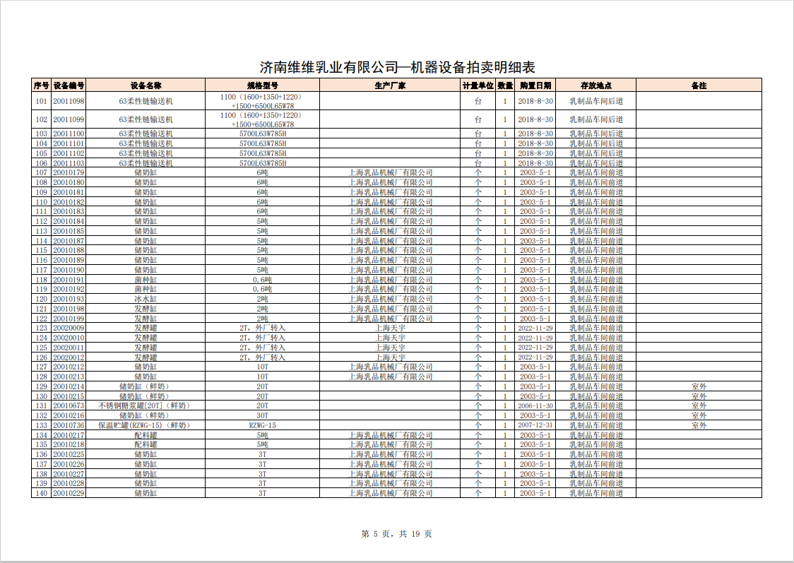 主要包含:牛奶生產(chǎn)設(shè)備、豆奶生產(chǎn)設(shè)備、利樂無菌灌裝設(shè)備、各型不銹鋼儲罐和發(fā)酵罐、鍋爐、烘干設(shè)備、空調(diào)、變壓器、配電設(shè)備、倉儲設(shè)備等。
