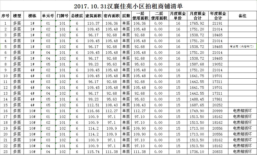 關(guān)注微信公眾號(hào)我公司受委托,定于2017年10月31日10時(shí)在本公司拍賣廳對(duì)以下小區(qū)門面房進(jìn)行公開拍租: