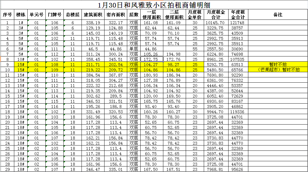即日起展示。有意承租者請攜帶有效證件至我公司辦理報名登記手續,并繳納每間1萬元競拍保證金即可參加拍賣會(每位競買人最多報名競拍5間);報名時間截止至1月29日16時。