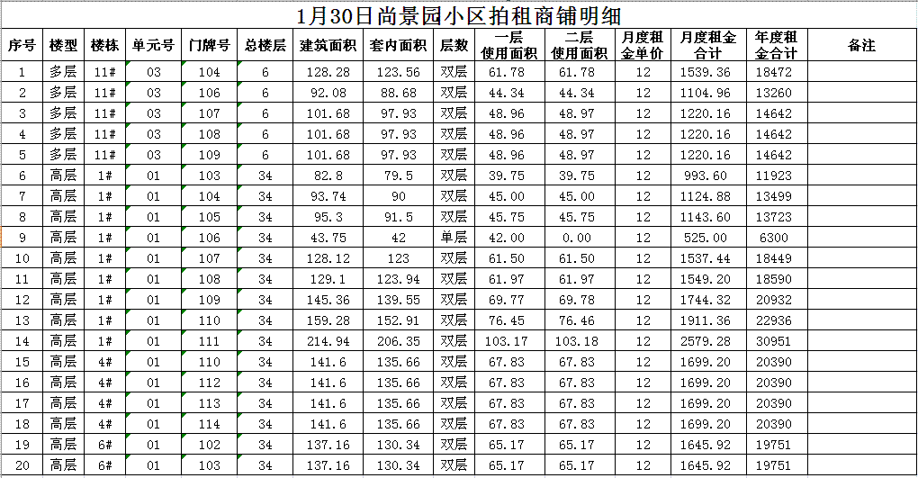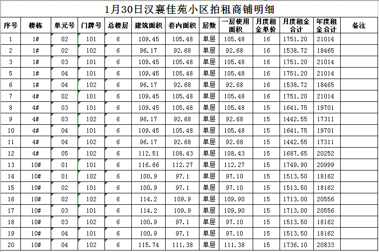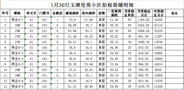 關注微信公眾號我公司受委托,定于2018年1月30日10時在本公司拍賣廳對以下小區門面房進行公開拍租: