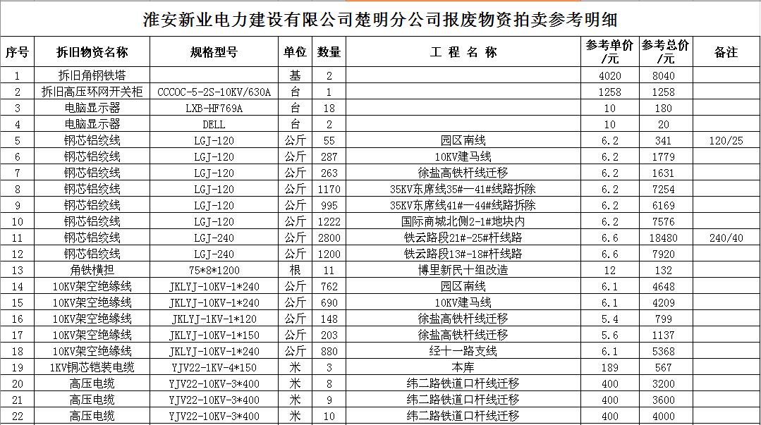 關注微信公眾號受江蘇徐供、淮供集體資產運營中心委托,我公司將通過中國拍賣行業協會網絡拍賣平臺以網絡競價的方式公開拍賣以下單位的廢舊物資各一批: