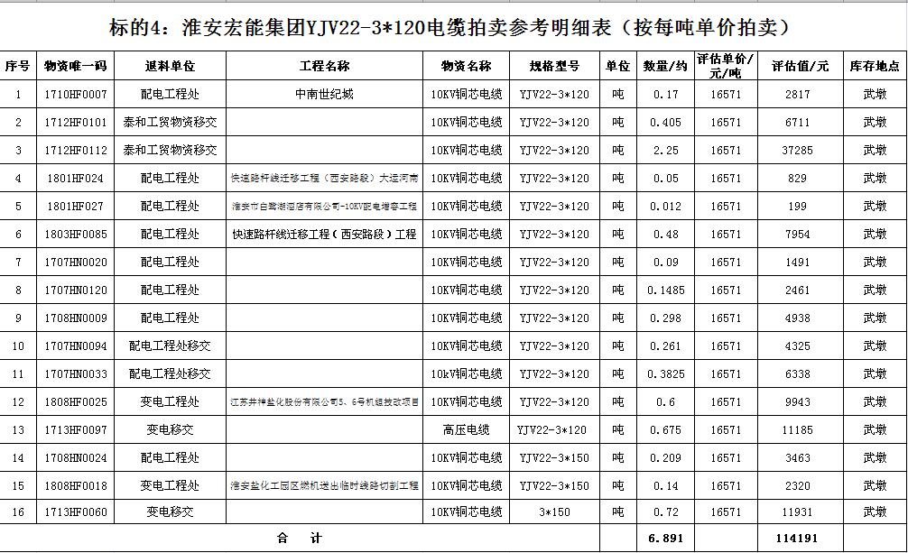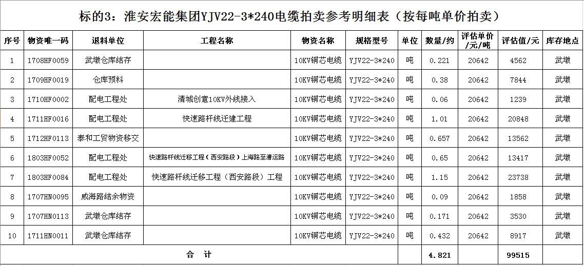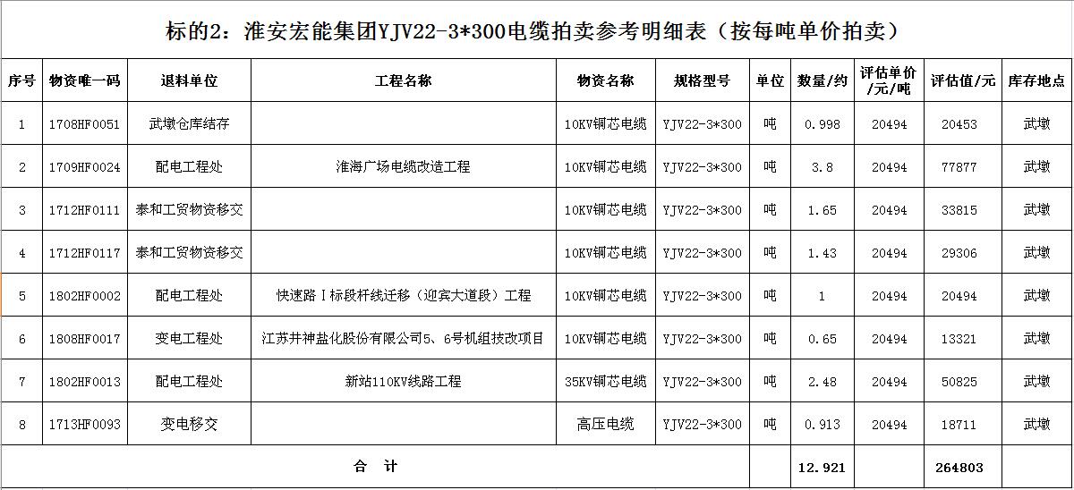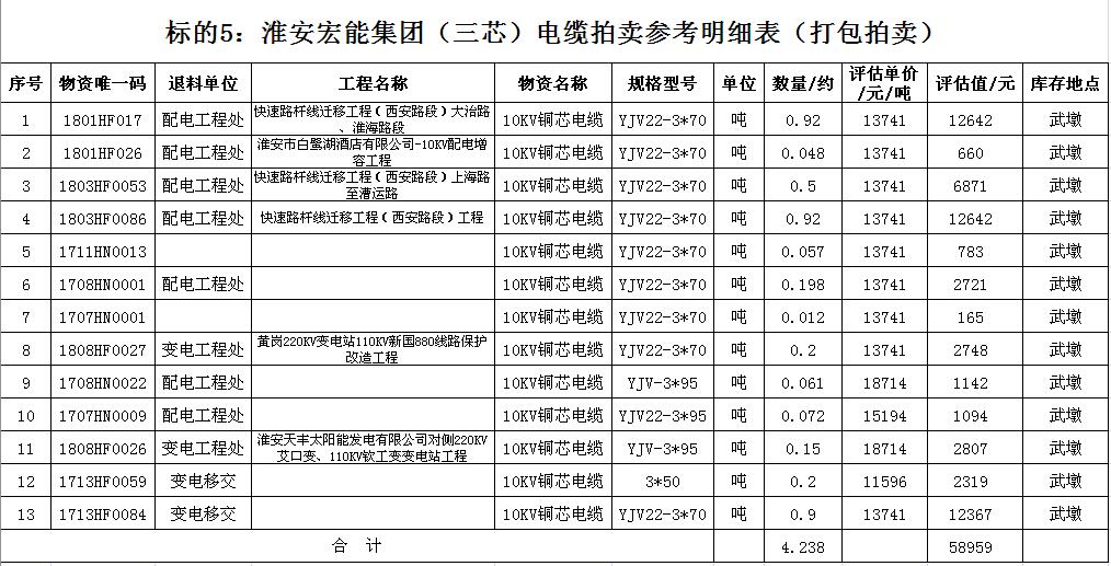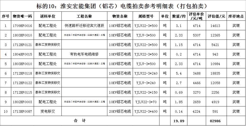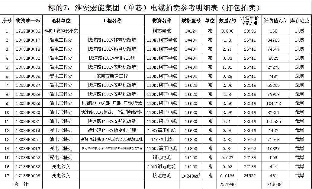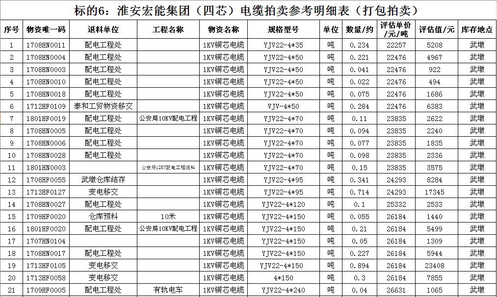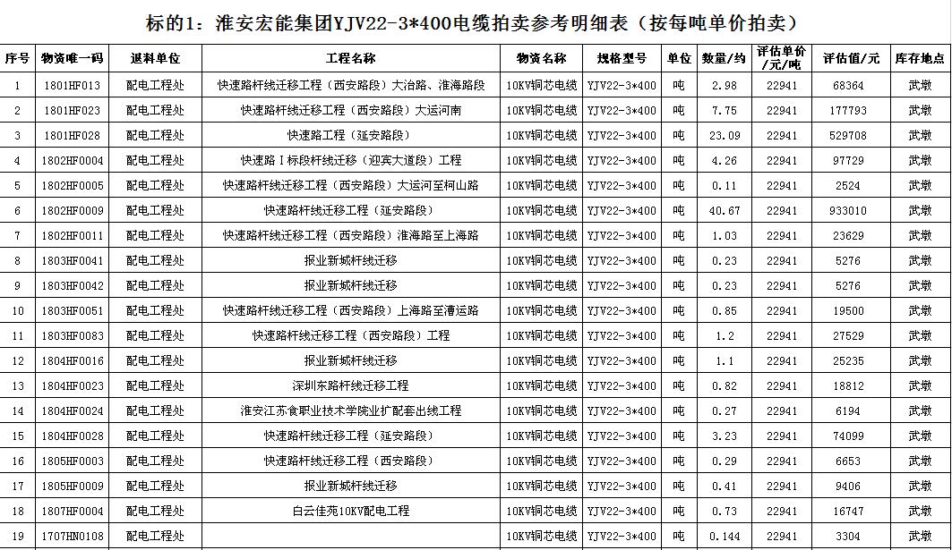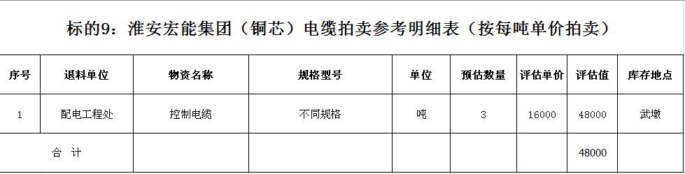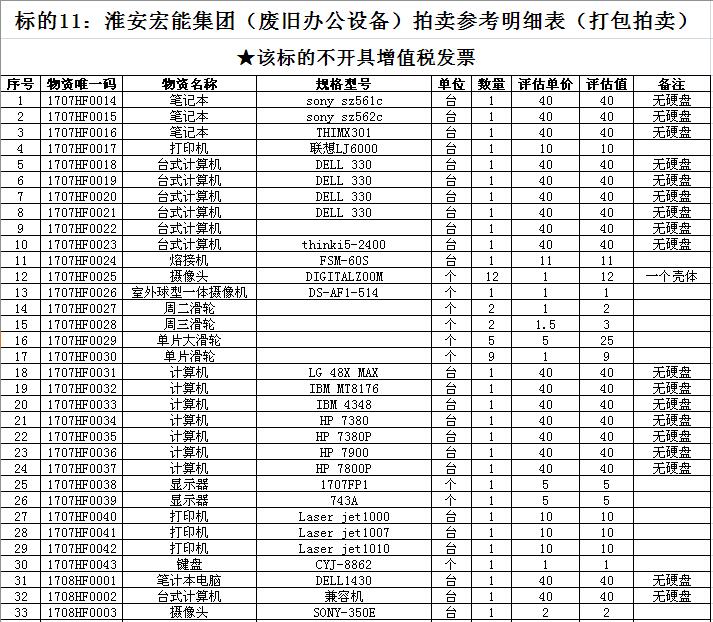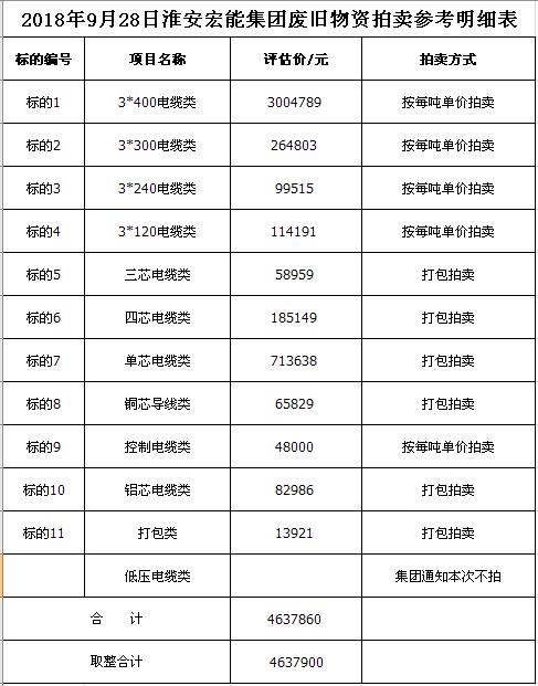 關注微信公眾號受淮安宏能集團有限公司委托,我公司將通過中國拍賣行業協會網絡拍賣平臺以網絡競價的方式公開拍賣廢舊物資一批,主要包括:各型電纜,計算機、打印機等辦公用品(詳見拍品目錄)。