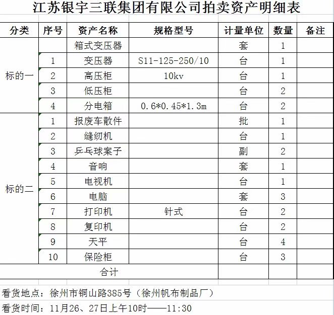 2、銀宇三聯集團廢舊物資一批,主要包含:變壓器、高低壓柜、報廢車散件、電腦、辦公設備等。