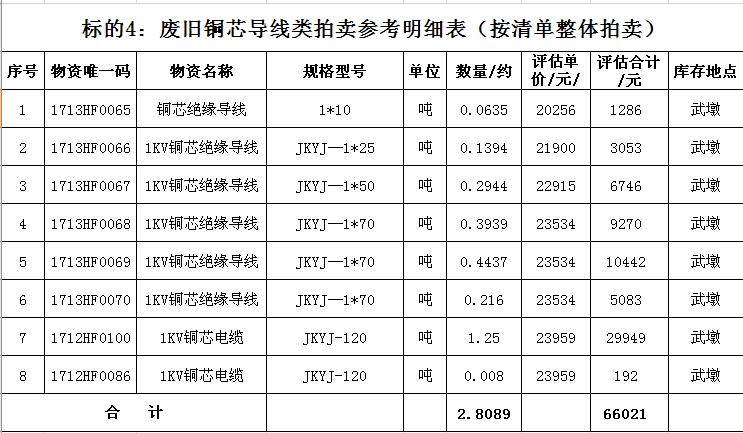 關注微信公眾號受淮安宏能集團有限公司委托,我公司將通過中國拍賣行業協會網絡拍賣平臺以網絡競價的方式公開拍賣以下廢舊物資,主要包括:高壓銅芯電纜、控制電纜、銅芯導線、鋁芯電纜、角鋼塔、鋼管塔等。