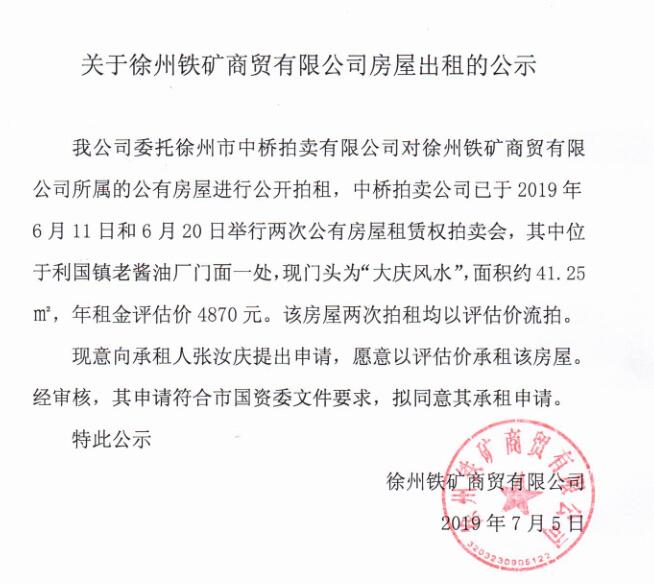 上一條:關于徐州鐵礦商貿有限公司房屋出租的公示