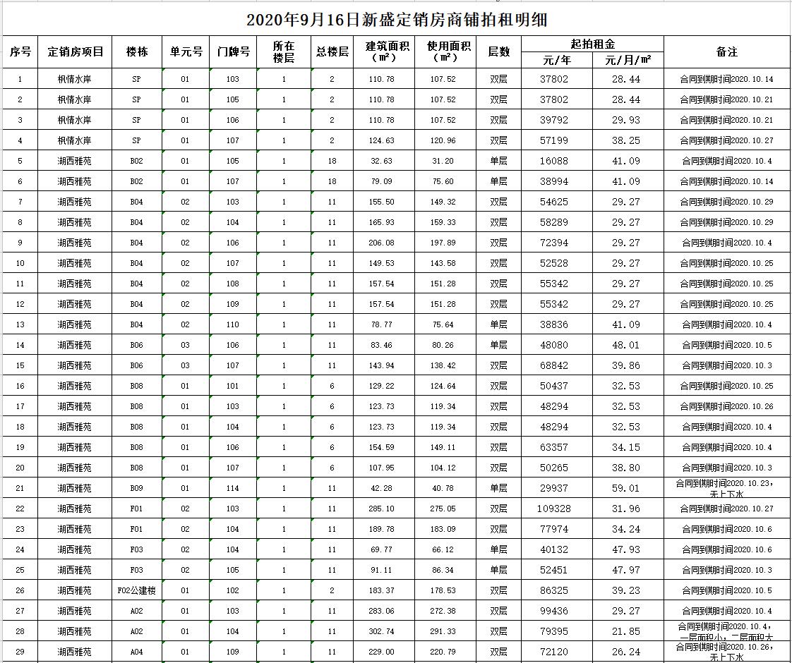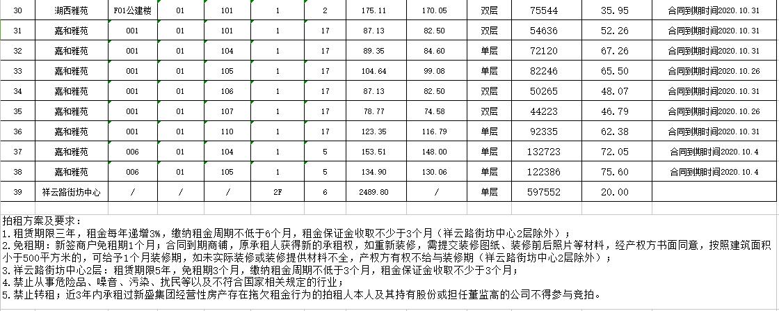 即日起展示。有意者請攜帶有效證件至我公司辦理報名手續,并交納競拍保證金即可參加拍賣會(商鋪保證金每間2萬元,祥云路街坊中心二層保證金10萬元),報名截止至9月15日16時。