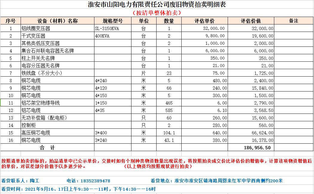 關注微信公眾號受委托,我公司定于2021年9月18日10時(網絡延時除外)在中拍平臺以網絡競拍的方式公開拍賣以下單位電力物資,主要包含:變壓器、開關柜、配電柜、控制柜及電纜等物資。